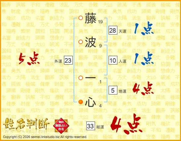 藤波一心さんの総運は33画の4点!