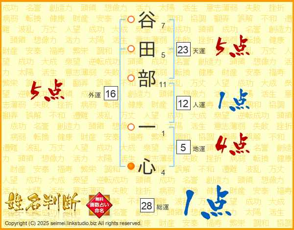谷(7画)田(5画)部(11画) 一(1画)心(4画)