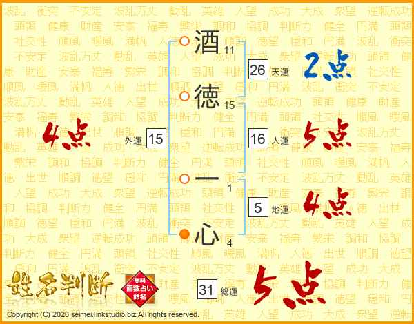 酒徳一心さんの総運は31画の5点!