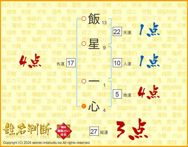 飯星一心さんの総運は27画の3点!