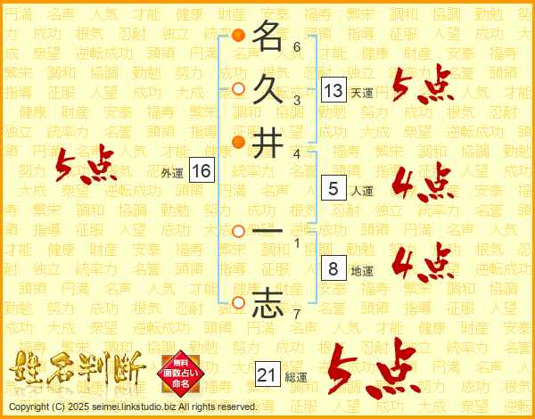 名久井一志さんの総運は21画の5点!