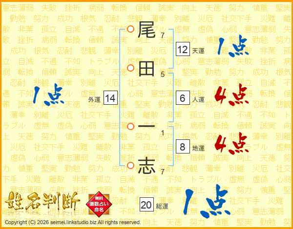 尾田一志さんの外運は14画の1点!