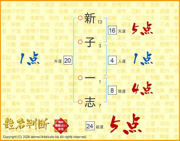 新子一志さんの総運は24画の5点!