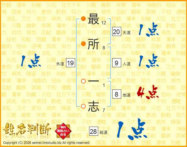 最(12画)所(8画) 一(1画)志(7画)