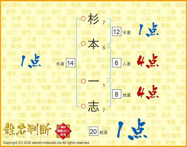 杉本一志さんの天運は12画の1点!