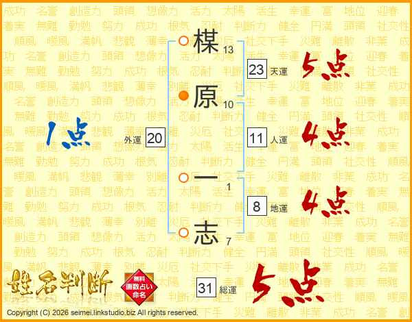 楳原一志さんの総運は31画の5点!