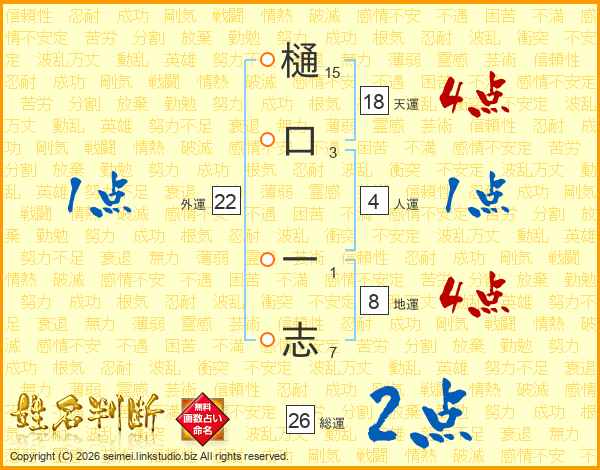 樋口一志さんの総運は26画の2点!