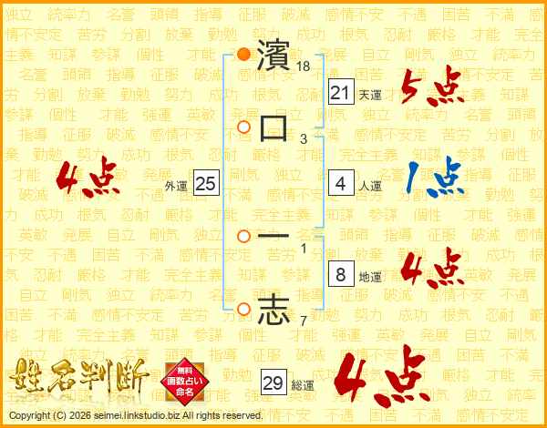 濱口一志さんの総運は29画の4点!