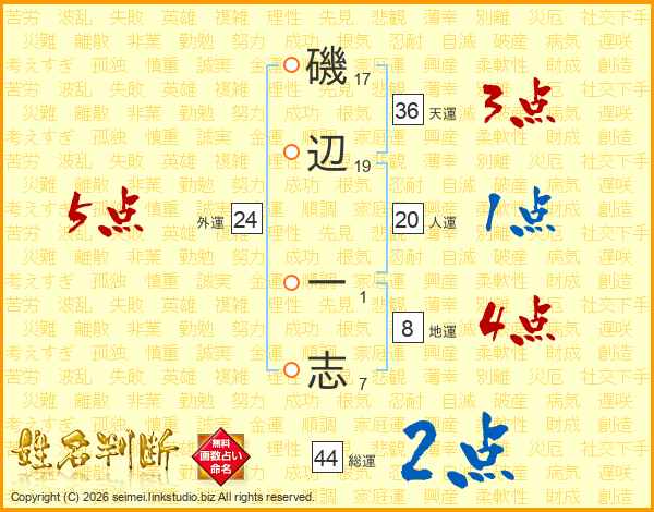 磯辺一志さんの総運は44画の2点!