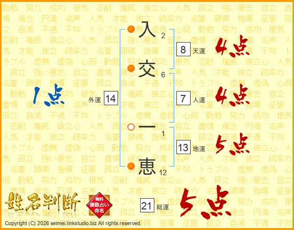 入交一恵さんの総運は21画の5点!