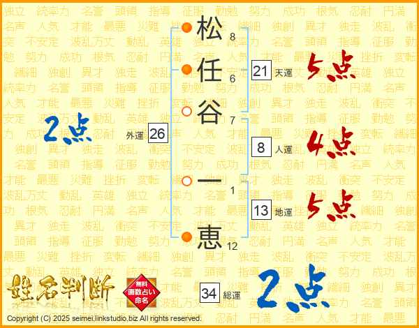 松(8画)任(6画)谷(7画) 一(1画)恵(12画)