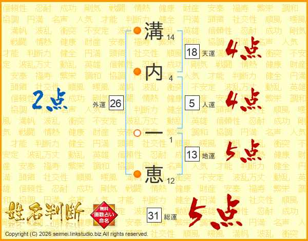 溝(14画)内(4画) 一(1画)恵(12画)