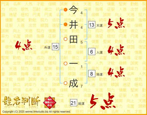 今井田一成さんの総運は21画の5点!