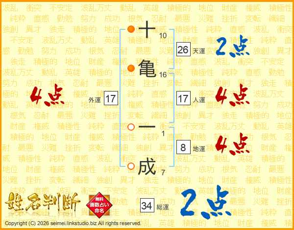 十亀一成さんの天運は26画の2点!