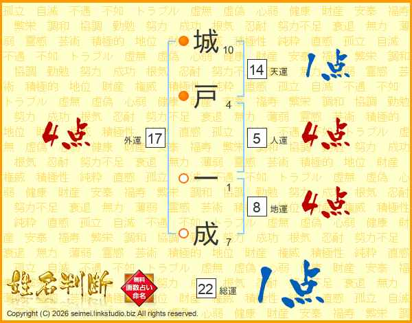 城戸一成さんの総運は22画の1点!