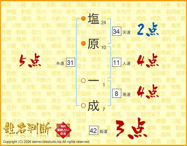 塩原一成さんの総運は42画の3点!