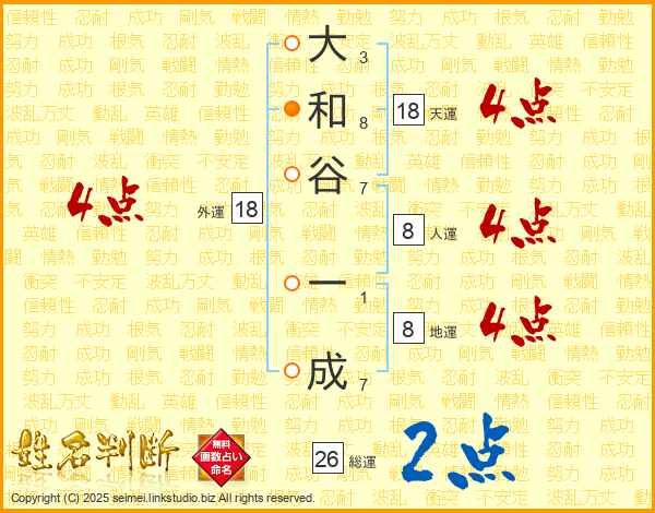 大和谷一成さんの総運は26画の2点!