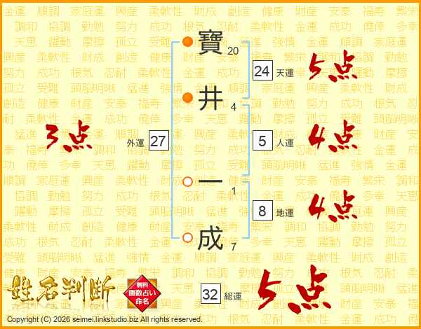 金運 順調 家庭運 興産 柔軟性 財成 創造