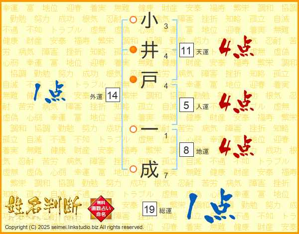 小井戸一成さんの総運は19画の1点!