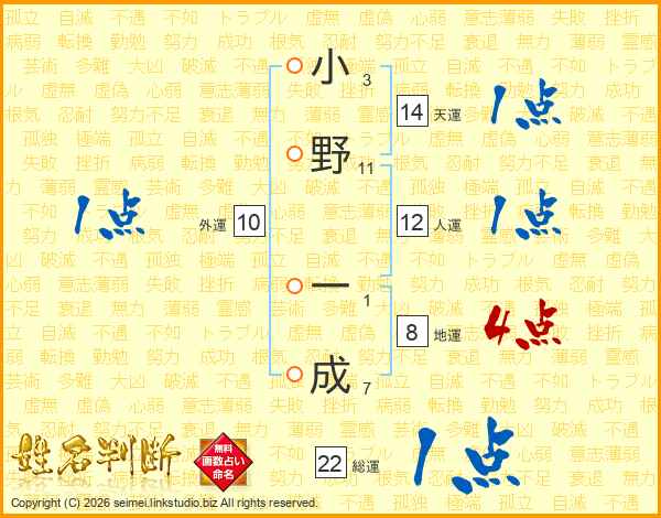 小野一成さんの総運は22画の1点!