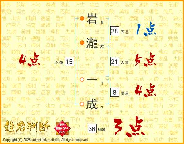 岩瀧一成さんの総運は36画の3点!