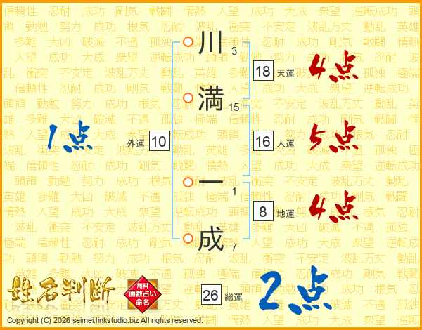 川満一成さんの天運は18画の4点!