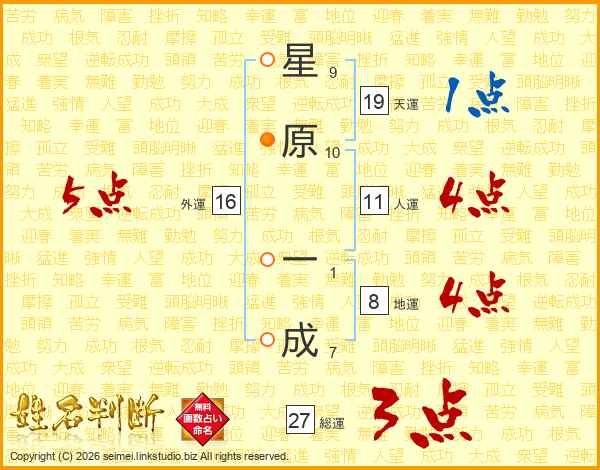 星原一成さんの総運は27画の3点!