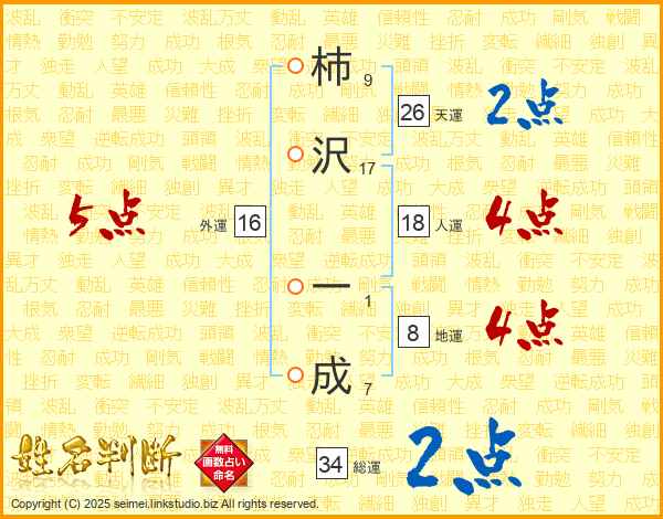 柿沢一成さんの総運は34画の2点!