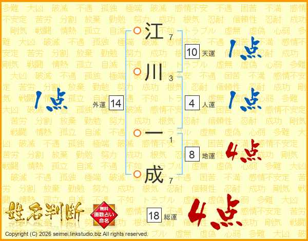 江川一成さんの総運は18画の4点!