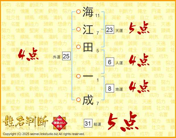 海江田一成さんの総運は31画の5点!