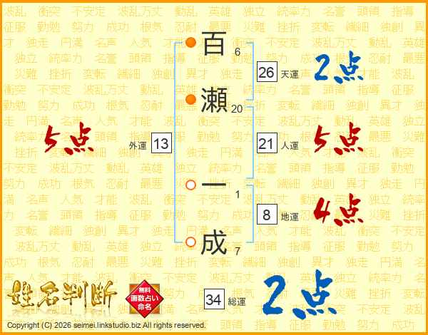 百瀬一成さんの総運は34画の2点!