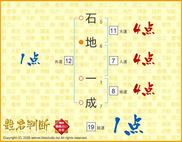 石地一成さんの総運は19画の1点!