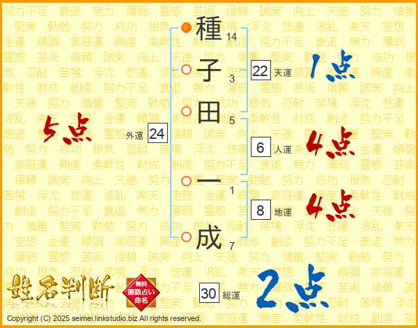 種子田一成さんの天運は22画の1点!