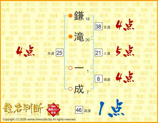 鎌滝一成さんの総運は46画の1点!
