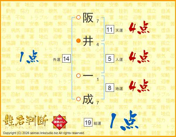 阪井一成さんの天運は11画の4点!