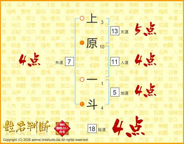 上原一斗さんの総運は18画の4点!