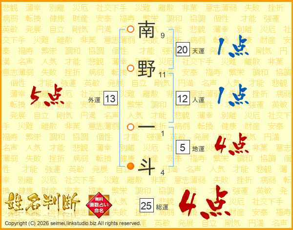 南野一斗さんの総運は25画の4点!