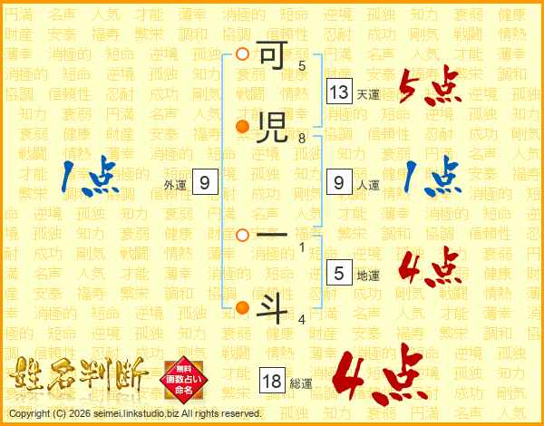 可(5画)児(8画) 一(1画)斗(4画)