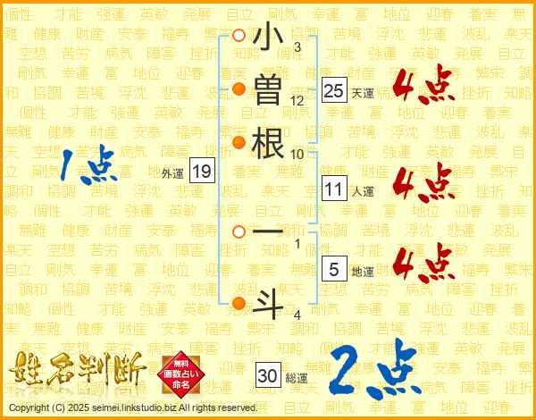 小(3画)曽(12画)根(10画) 一(1画)斗(4画)