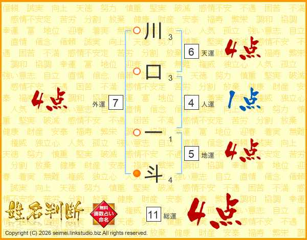 川口一斗さんの総運は11画の4点!