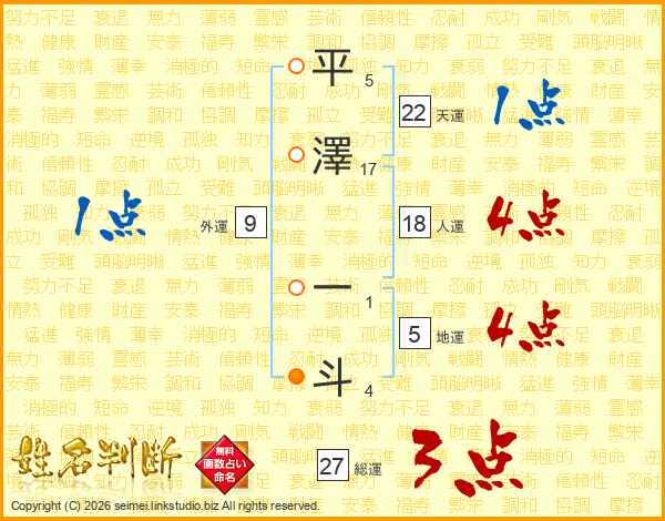 平澤一斗さんの総運は27画の3点!