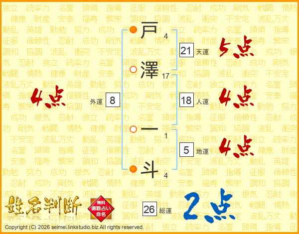 戸澤一斗さんの総運は26画の2点!