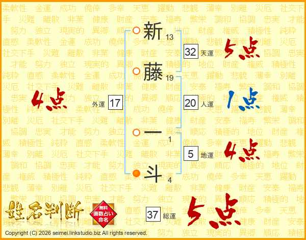 新藤一斗さんの総運は37画の5点!