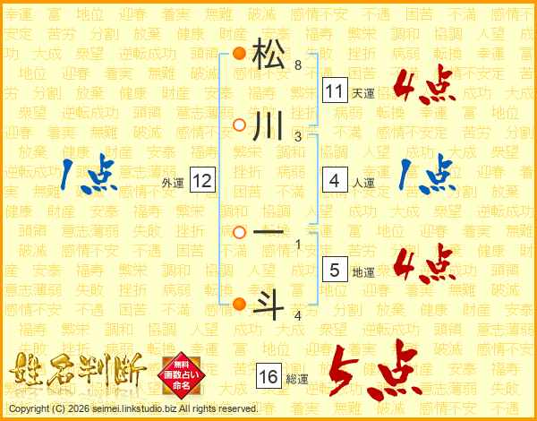 松川一斗さんの総運は16画の5点!