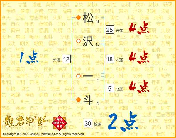 松沢一斗さんの総運は30画の2点!