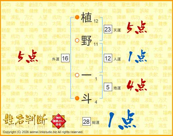植野一斗さんの天運は23画の5点!