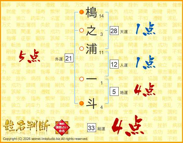 槝之浦一斗さんの総運は33画の4点!