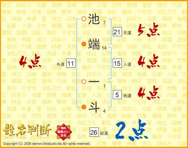 池端一斗さんの総運は26画の2点!