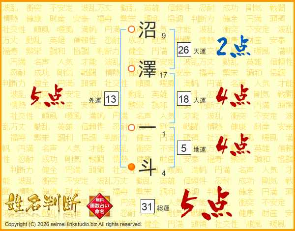 沼澤一斗さんの天運は26画の2点!