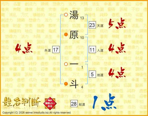 湯原一斗さんの人運は11画の4点!